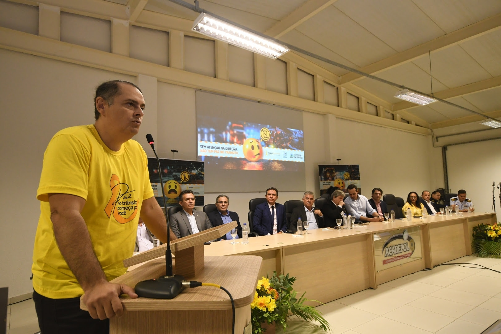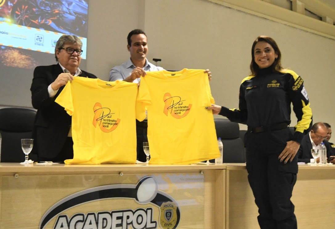 O governador João Azevêdo participou, na manhã desta segunda-feira (6), da solenidade de abertura do Movimento Maio Amarelo, campanha mundial que tem como objetivo a redução de mortes por conta de sinistros de trânsito. Durante o evento, ocorrido na Academia de Polícia (Acadepol), no bairro Costa do Sol, em João Pessoa, o chefe do Executivo estadual destacou a conscientização da população e rigor nas fiscalizações para um trânsito mais seguro. O tema deste ano da campanha Maio Amarelo é “Paz no Trânsito Começa por Você!”