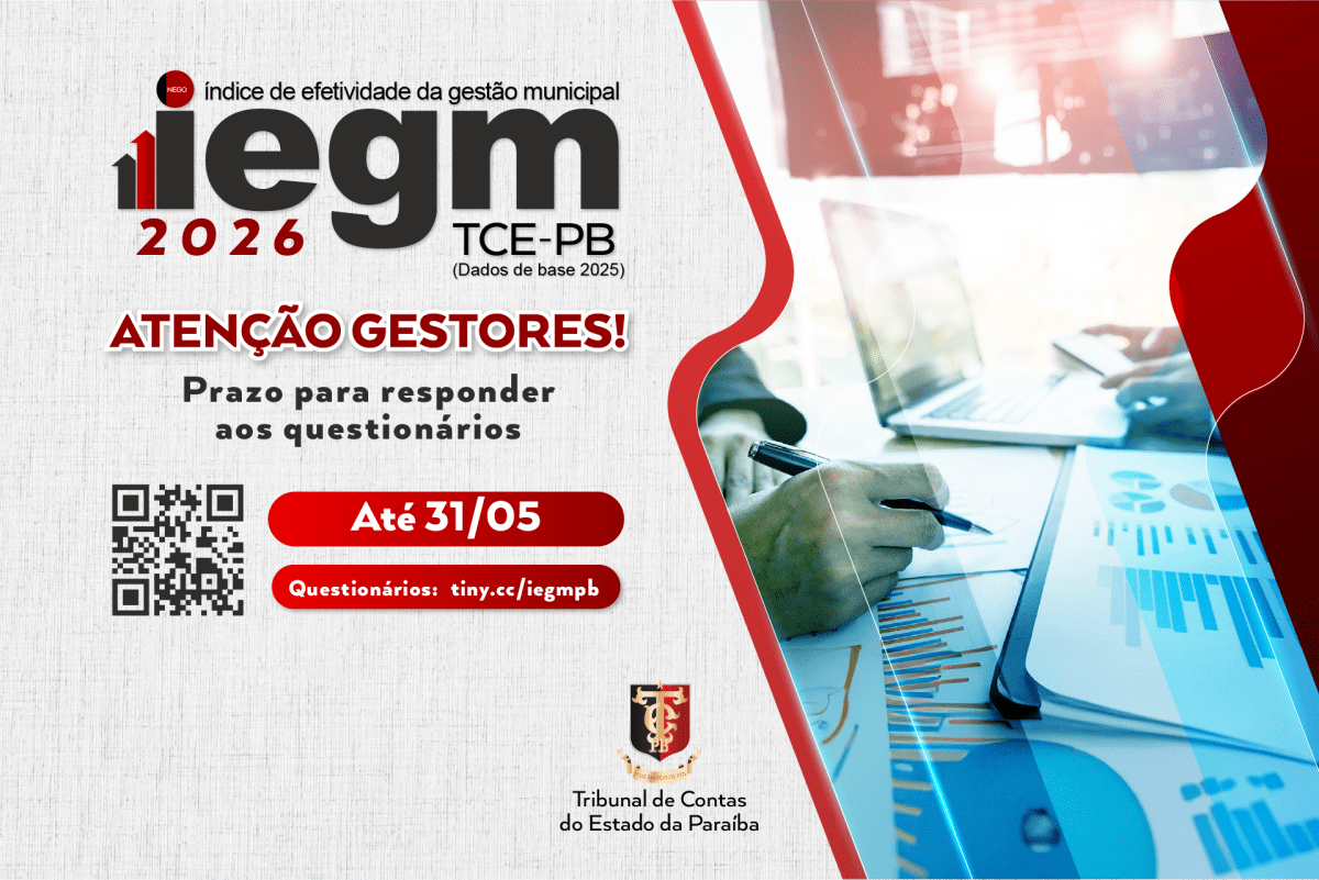 O Tribunal de Contas da Paraíba (TCE-PB) definiu o período para preenchimento e envio dos questionários do Índice de Efetividade da Gestão Municipal (IEGM) 2026, ano-base 2025. De acordo com portaria publicada no Diário Oficial Eletrônico da Corte, os gestores municipais terão até o dia 31 de maio de 2026 para encaminhar as informações exigidas.
