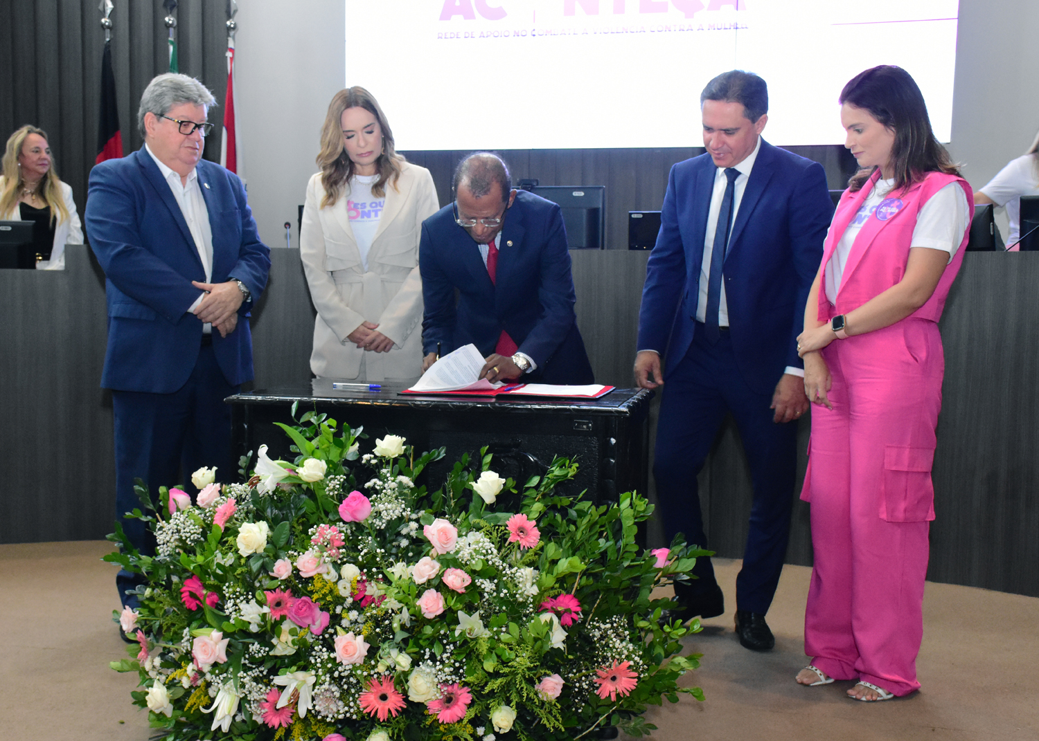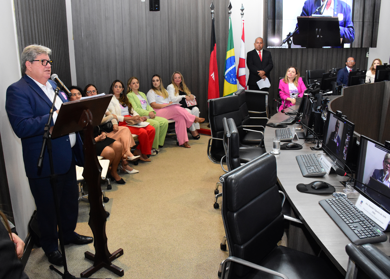 O prefeito de João Pessoa, Cícero Lucena, esteve presente ao evento para a assinatura do termo de cooperação e salientou a importância dessa ação interpoderes. “Essa reunião aqui é exatamente a demonstração do quanto se pode fazer muito mais quando se faz de forma correta. E qual é a forma correta? É agir através da educação para criar a conscientização das pessoas, é de forma preventiva. Eu tenho certeza absoluta que nós vamos conquistar aquilo que desejamos, que é o respeito e a valorização das mulheres do nosso país. Eu fico muito feliz em ver como o presidente João Benedito está participando desse evento e das ações que esse projeto irá contribuir para a melhoria da qualidade de vida, de mais respeito pelo ser humano”, afirmou.